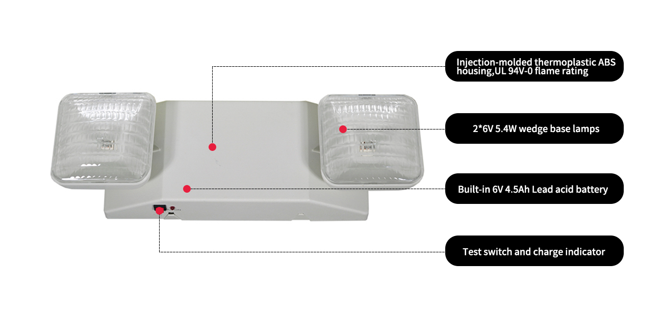 Rumah / Produk / Cahaya kecemasan / Lampu kecemasan kepala dua / JEU1 2x5.4w lampu kecemasan pijar