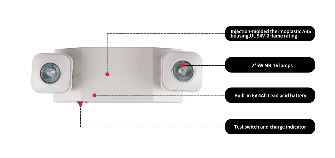 Rumah / Produk / Cahaya kecemasan / Lampu kecemasan kepala dua / JEU2 2x5w MR-16 Lampu Kecemasan