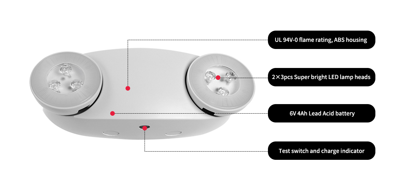 Rumah / Produk / Cahaya kecemasan / Lampu kecemasan kepala dua / JLEU6 UL/CUL 600lm Output Tinggi Dual Head Head Earriate Light