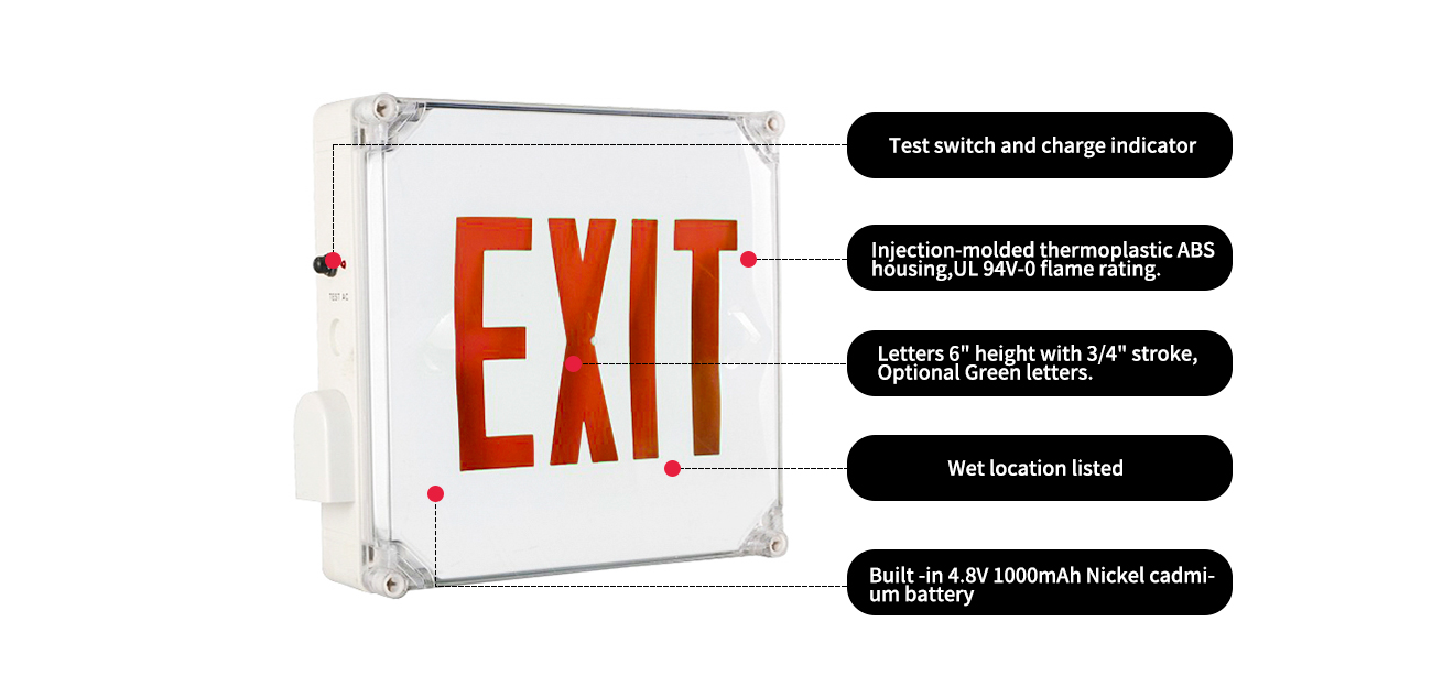 JEEWPR-OUTDOOR Waterproof Red LED Exit Light