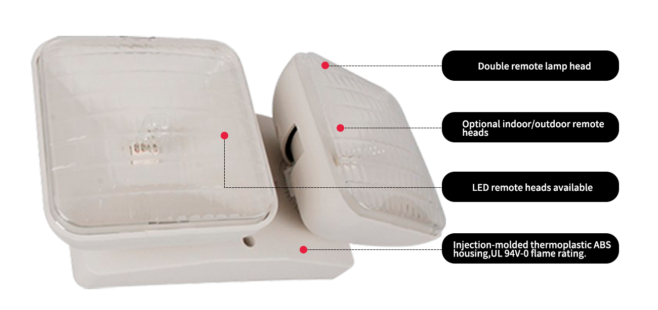 Rumah / Produk / Cahaya kecemasan / Kepala jauh kecemasan LED / JRH-2-UL 94V-0 Penarafan Flame Double Remote Lamp Heads